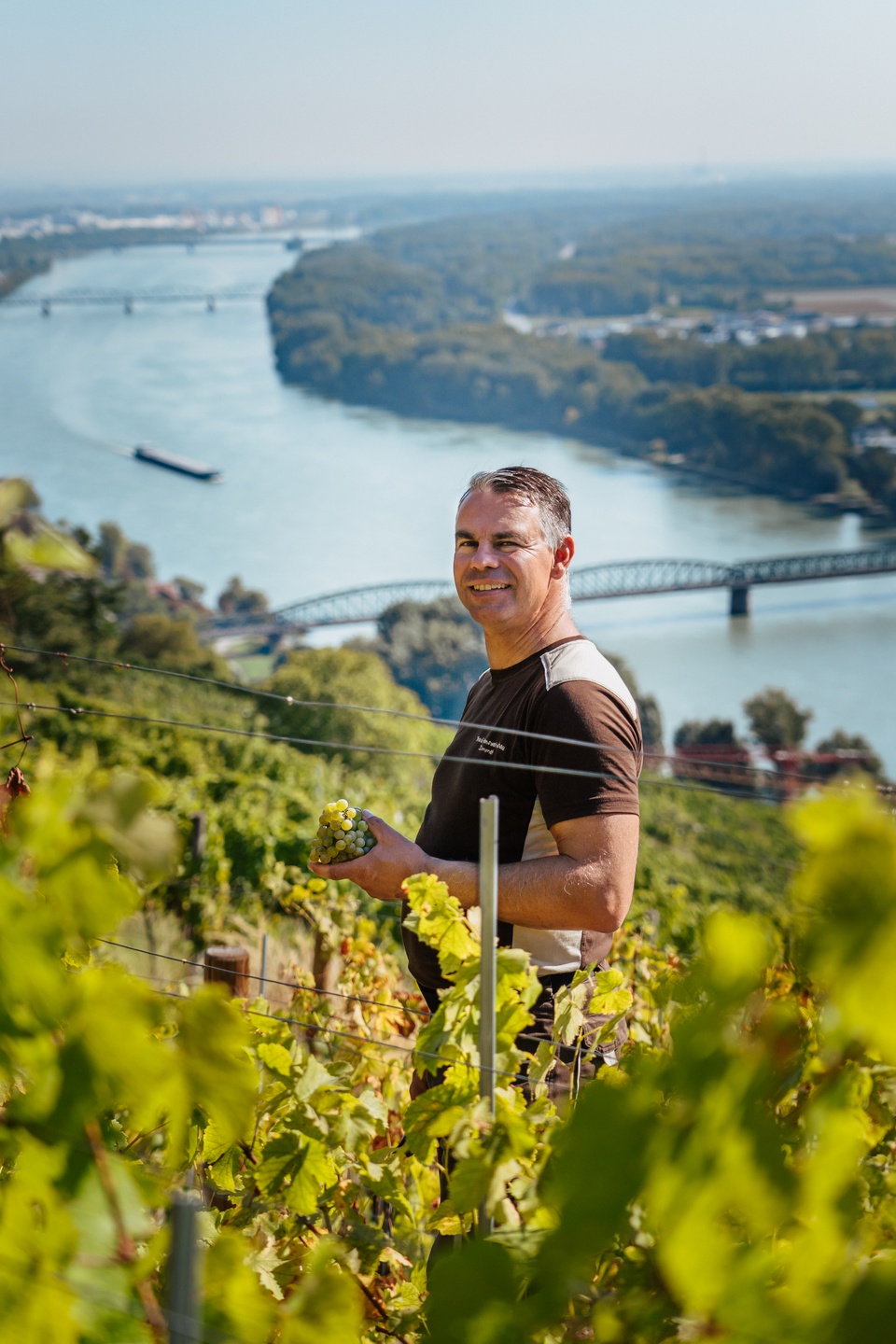 Beim Arbeiten im Weingarten wird man mit dem herrlichen Ausblick ins Donautal belohnt, der oft über den Wienerwald hinaus reicht.